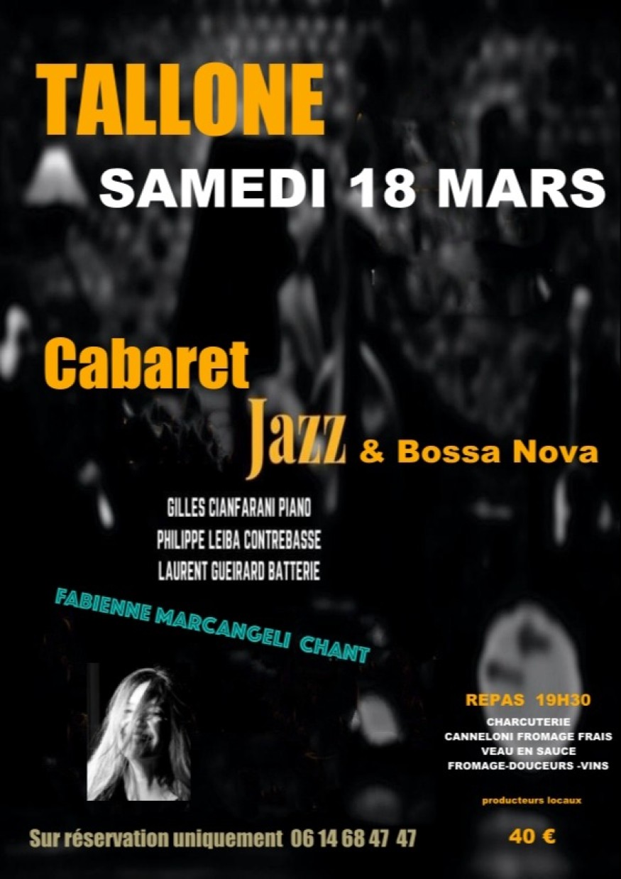 Jazz à Tallone ce samedi 18 mars . Une soiree cabaret jazz /bossa nova avec Fabienne Marcangeli